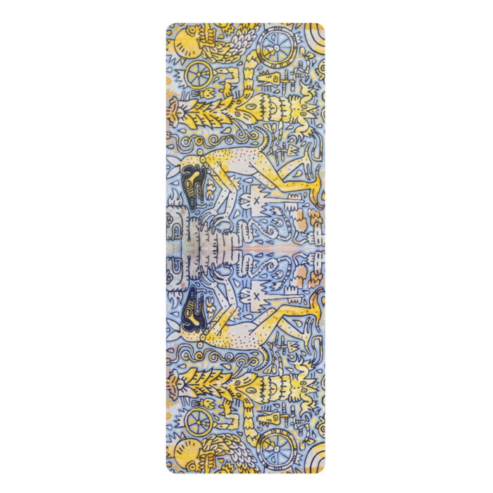 The Tulum Rubber Yoga Mat brings sacred intention to every session with a design inspired by authentic Mayan artistry. Featuring edge-to-edge prints drawn from the murals of San Cristóbal de las Casas, this mat connects your practice to a deeper story – one of ancestral knowledge and living tradition.